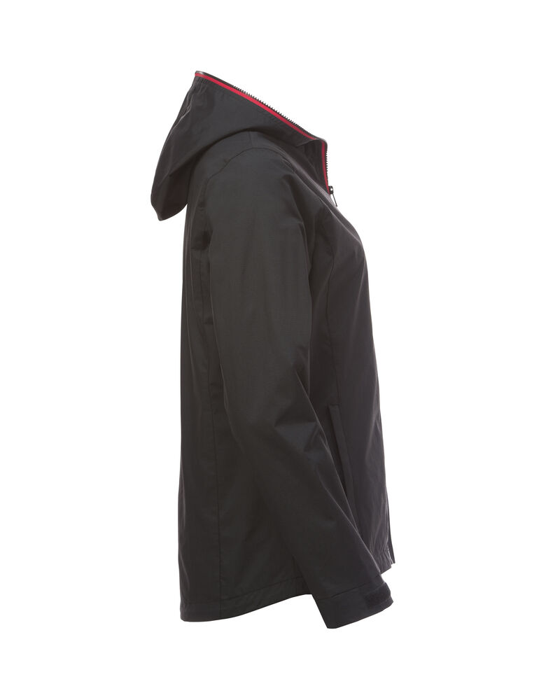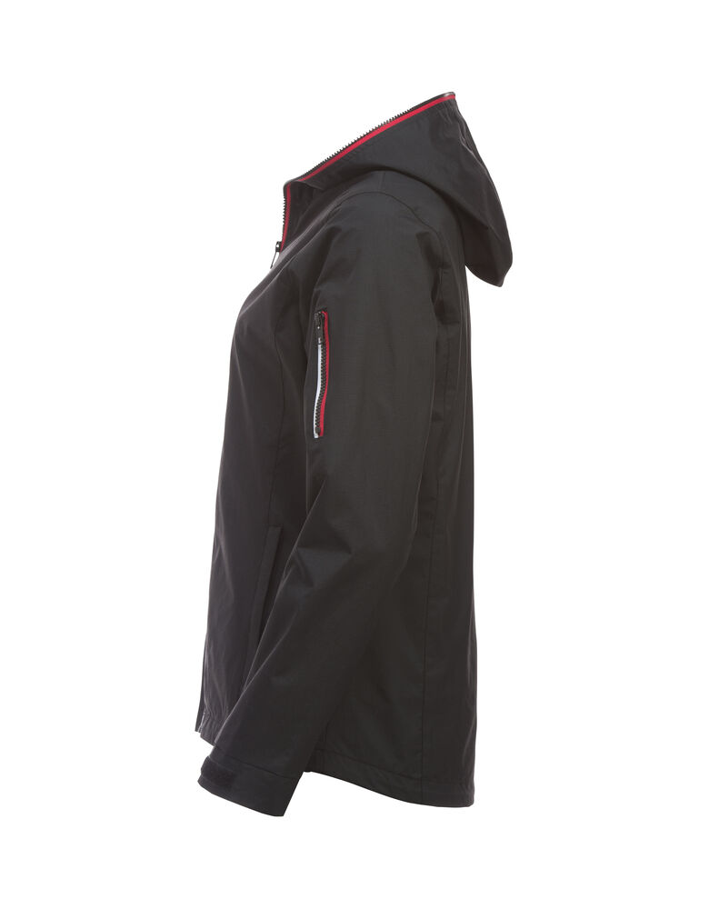 Opvallende, lichtgewicht jas met rits die tot en met de capuchon dicht kan. De jas is uitgerust met opvallende contrasterende strepen die langs de rits lopen voor een unieke, opvallende uitstraling. De jas is gemaakt van hoogwaardig ripstop polyester met PU coating ter bescherming bij regenachtig weer. De jas is gemakkelijk te veredelen dankzij de drukkersrits aan de binnenzijde.