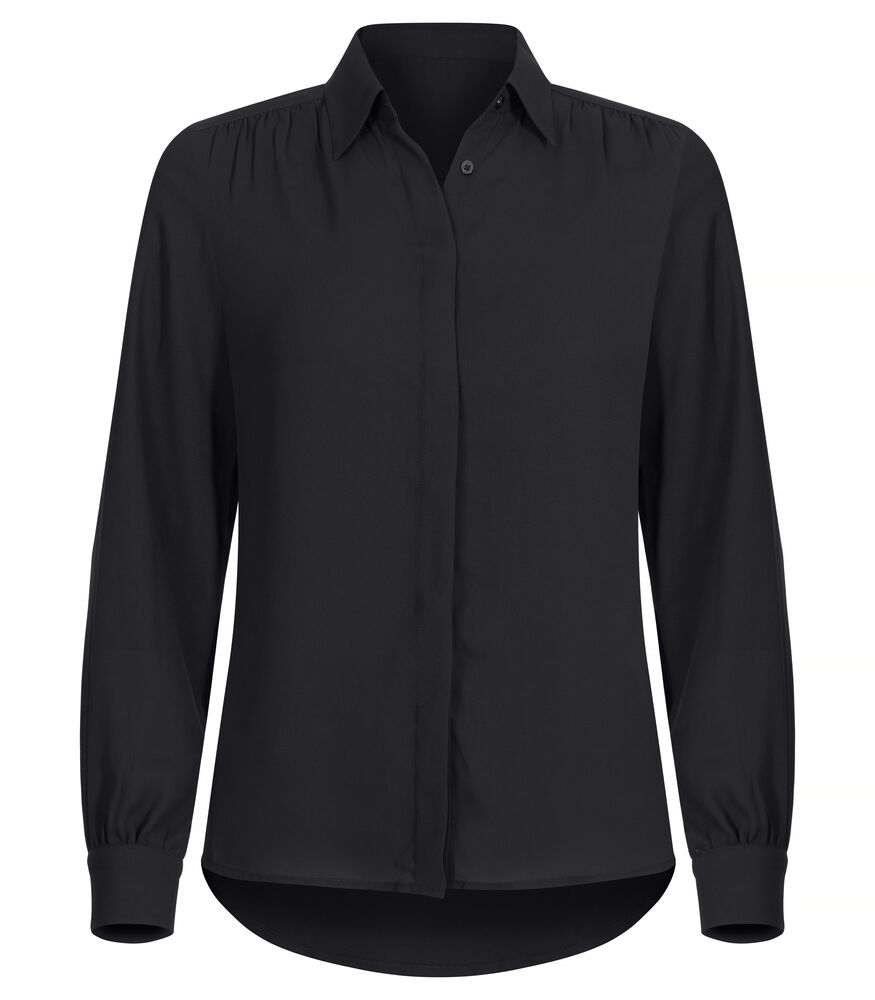 Een tijdloze klassieke blouse. Gemaakt van een lichte en semi-transparante stof die mooi soepel valt. De blouse is voorzien van een verborgen knoopsluiting en plooien aan de voorzijde en mouwuiteinde. Voorzien van een schouderpas aan de achterzijde.