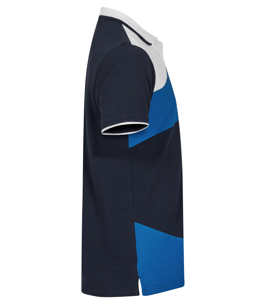 Moderne polo met contrasterende panelen en details in de kraag en bij de mouwen. Hoogwaardig afgewerkt met zijsplitjes en drie ton sur ton knopen. Verder voorzien van verstevigde necktape en een gemakkelijk te verwijderen label voor rebranding.