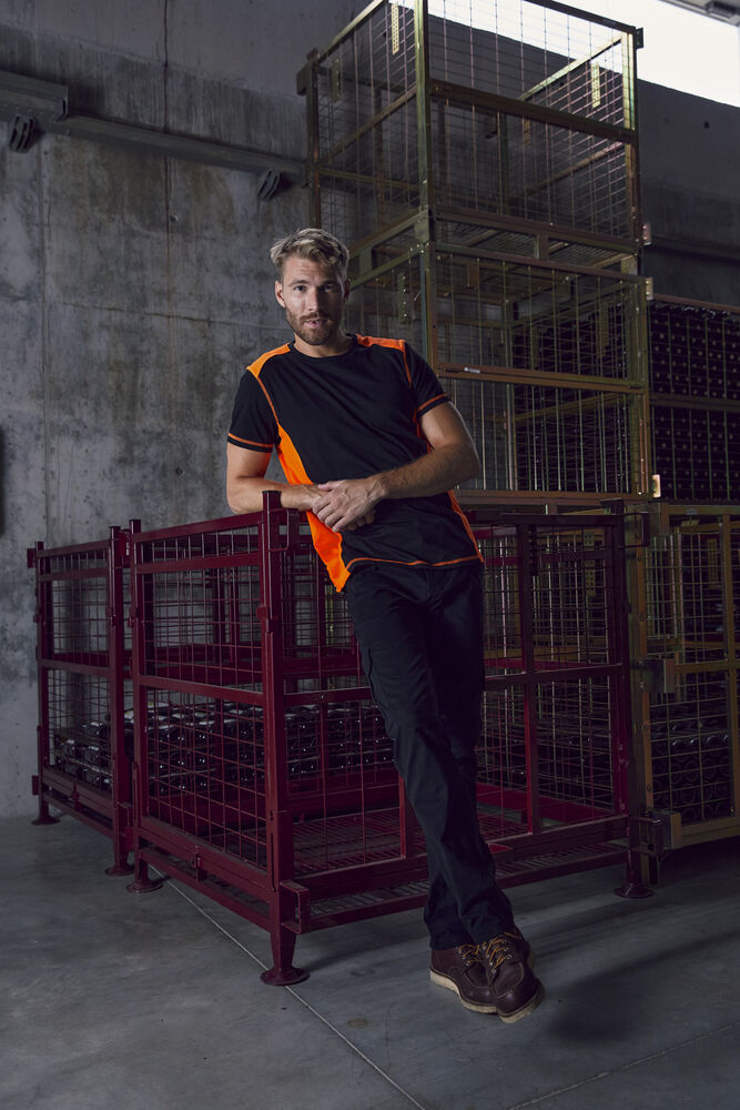 T-shirt met contrasterende panelen voor betere zichtbaarheid. Gemaakt van katoen en gerecycled polyester. Afgewerkt met contrasterende stiksels, rib in de kraag, verstevigde necktape en gemakkelijk te verwijderen label voor rebranding.