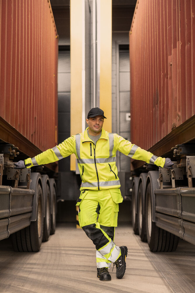 Praktische, lichte Hi-Vis softshell jas, ideaal te dragen als tweede laag. De jas is voorzien van twee steekzakken aan de voorzijde met rits, borstzak met rits en manchetten met duimgaten. De jas is hoogwaardig afgewerkt met naadloze, reflecterende strepen op het lijf en de schouders, YKK rits aan de voorzijde en elastische boorden. De jas heeft een goede prijs-kwaliteitverhouding.
