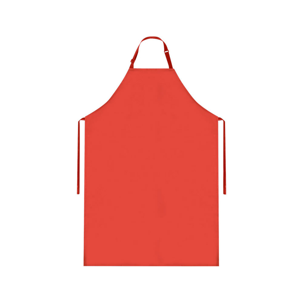 Waterdichte schort vervaardigd uit 320 g/m2 polyester in combinatie met PVC, biedt waterbestendigheid en effectieve bescherming tijdens het gebruik. Inclusief bijpassende banden voor de hals en taille.