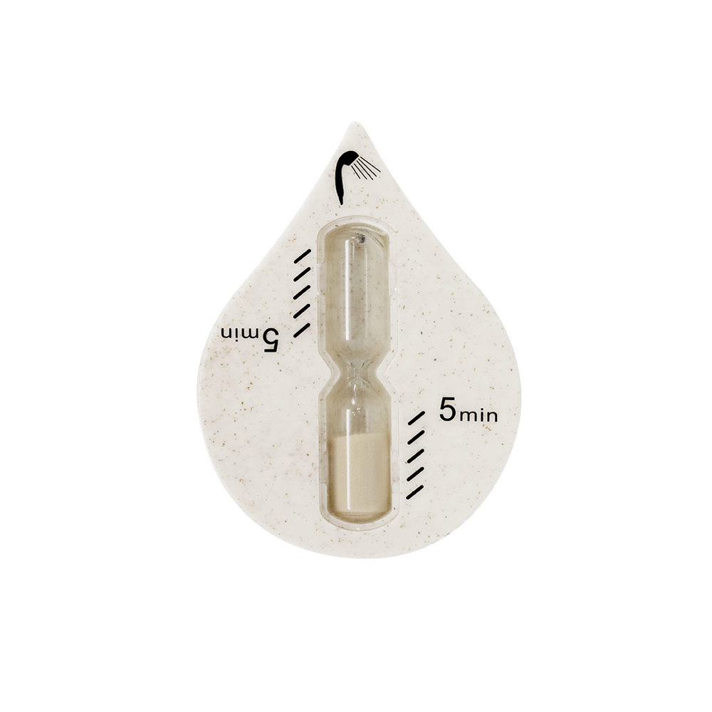 Zandloper gemaakt van tarwegras met een originele druppelvorm. Met een duur van 5 minuten, speciaal ontworpen om de tijd van de douche te meten. Met een zuignap van hoge hechting.Tarwegras bevordert het gebruik van natuurlijke grondstoffen, waardoor de vervuilende emissies worden verminderd.