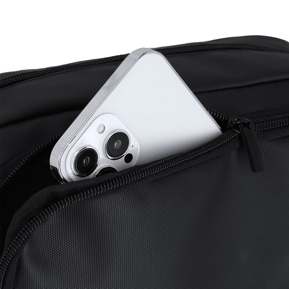 Multi-purpose toilettas in zacht PU. Hoofdvak en voorkant vak, met ritsen en metalen trekker. En praktische handgreep voor comfortabel transport.