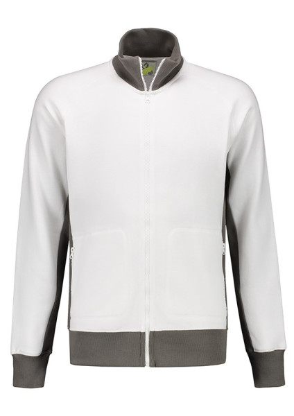 Lemon & Soda Workwear Contrast Cardigan met flatlock sierstiksels langs de raglanmouwen en zijzakken. De zijzakken zijn voorzien van een rits. Kraag en boorden met elastaan. Onderdeel van de Contrastlijn met zes stijlen, acht maten en tien kleurcombinaties. Combintatietip: Met het uni T-shirt LEM4501 heeft u een uitstekende combinatie!