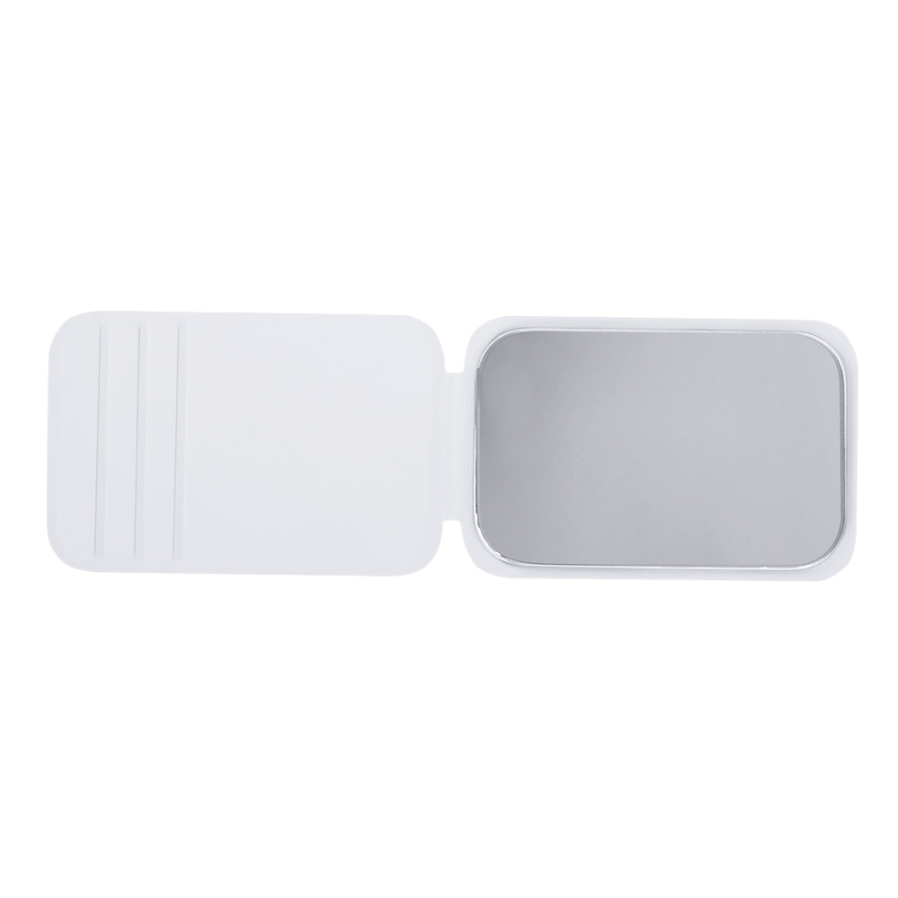 Opvouwbare spiegel met omslagen van zacht PU. Ontworpen met verstelbare standaard in drie posities. Met 1x vergroting.