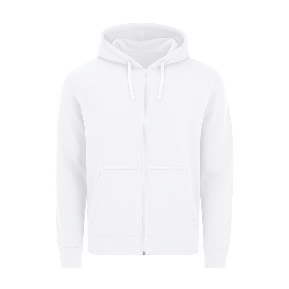 Unisex hoodie met gevoerde capuchon in bijpassende dubbele stof. Gemaakt van katoen en polyester in zacht geruwd fleece 280 g/m. Voorzien van volledige ritssluiting aan de voorkant in bijpassende kleur, verstelbaar trekkoord met bijpassende metalen oogjes, kangoeroezak, verstevigd nektape en manchetten en tailleband in 1x1 ribtricot met elastaan voor betere pasvorm en comfort.