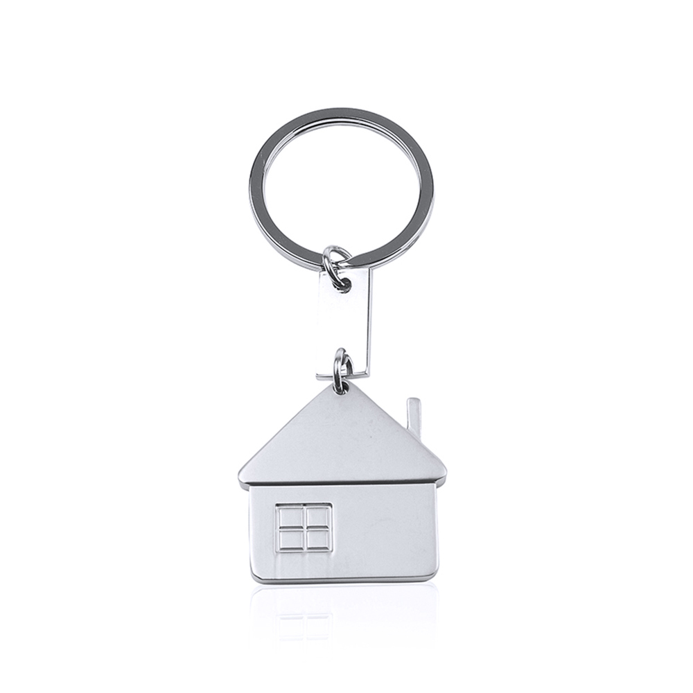 Metalen sleutelhanger in leuk huisontwerp in een elegante, matte afwerking. Met body, speciaal ontworpen voor laserprinten.