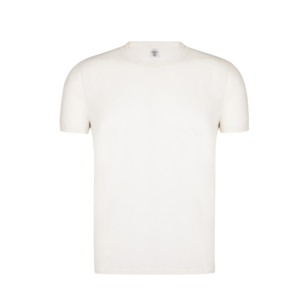 MC150 Keya T-shirt voor volwassenen in 100% organisch katoen, single jerseyl 150g/m2. Verkrijgbaar in natuurlijke kleur en in de maten S, M, L, XL, XXL. Biologisch onderscheidend in label.