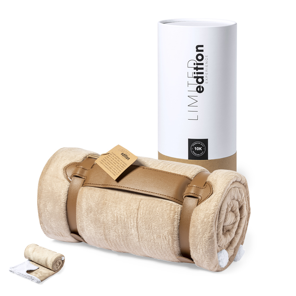 Deken met exclusief ontwerp Limited Edition.In een elegant tweekleurig ontwerp, met een koraal fleece buitenkant in camel en zachte witte lamsvacht binnenkant. Vervaardigd uit eersteklas materialen (Coral Fleece en Sherpa 380g/m2), met bruine PU-leren draagriem.Gepresenteerd in een Limited Edition Belevenis etui, met uniek ontwerp en beschermd door industriële eigendomsrechten. Inclusief gerecyclede kartonnen kaart met Limited Edition beschrijving.Uit de perfecte combinatie van exclusiviteit en ontwerp komt Limited Edition, een speciale collectie promotionele ideeën in beperkte oplage. Een nieuw concept, geïnspireerd door de fusie van premium artikelen met de nieuwste trends, in batches van beperkte eenheden, die een unieke, exclusieve en onvergetelijke cadeau-ervaring bieden.