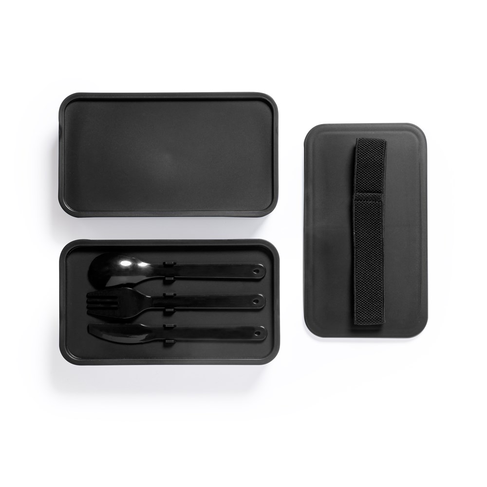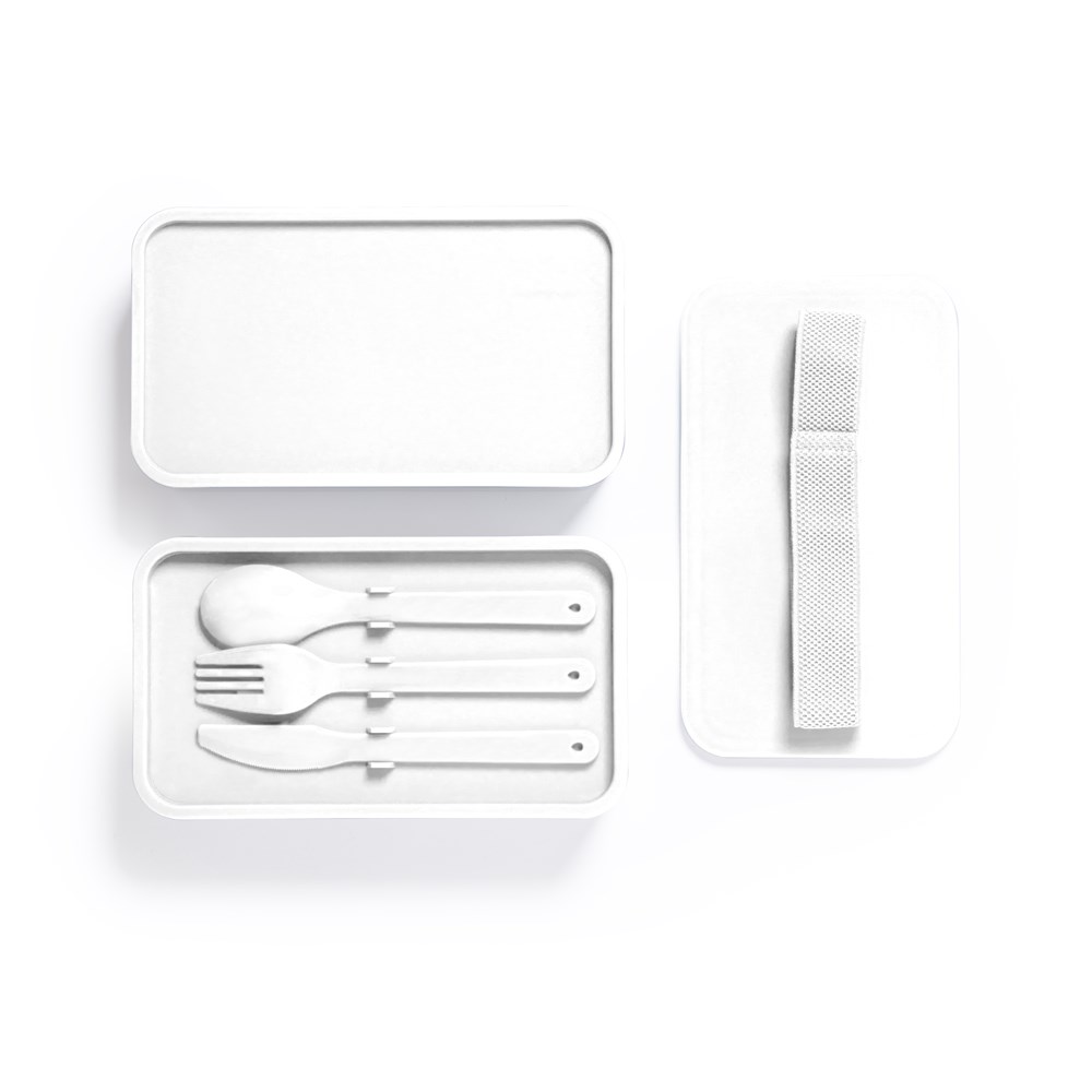 Lunchbox met een inhoud van 1,4 l, gemaakt van BPA-vrij PP. Twee compartimenten met elk een inhoud van 700 ml. Binnenvakken met vork, lepel, mes en tussenschotten. Verkrijgbaar in een breed scala aan kleuren, met bijpassende elastische veiligheidsband. Food Grade-gecertificeerd, wat de veiligheid garandeert wanneer voedsel in contact komt met het materiaal dat is gebruikt om het product te vervaardigen.