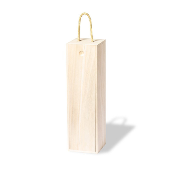 Premium presentatiedoos voor 1 fles gemaakt van natuurlijk Paulownia-hout, lichtgewicht en resistent. Binnenzijde met veiligheidssluiting voor flessenhals, met schuifdeksel en draagkoord.