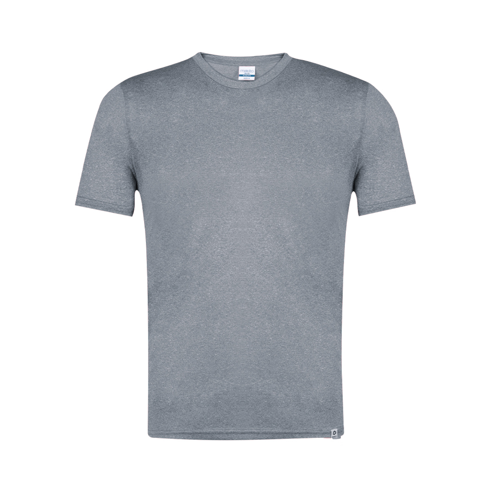 Uniseks technisch T-shirt. Gemaakt van 100% gerecycled polyester en kleur met gemêleerd effect. De stof van 135g/m2 maakt het een lichtgewicht kledingstuk dat ideaal is voor sport en dagelijks gebruik. Ademende stof, gemakkelijk te wassen en sneldrogend. Zeer zacht gevoel en moderne snit. Smalle ronde hals in 2x2 rib. Dubbel gestikte zoom en mouwen voor duurzaamheid en weerstand tegen intensief gebruik. Met RPET-label aan de buitenkant, indicatief voor een product van gerecyclede oorsprong. Eenvoudig verwijderbaar label en verkrijgbaar in de maten XS, S, M, L, XL en XXL.