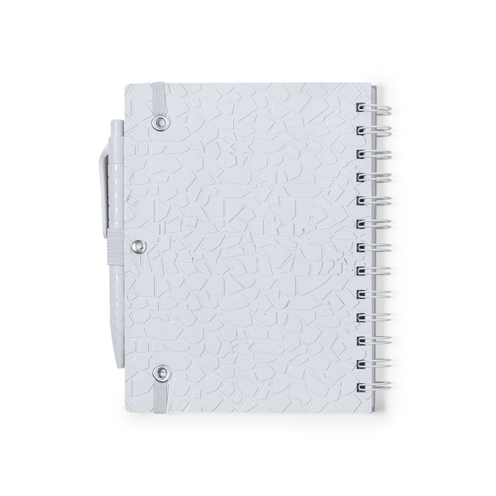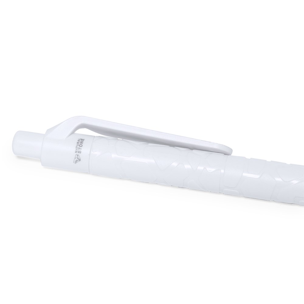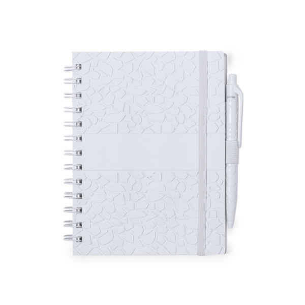Notitieboek en pennenset. Inhoud: Ring notitieboek met harde kaft gemaakt van steenextracten, in elegante witte afwerking met penhouder. Unieke kaft met reliëfontwerp. 70 witte vellen en enkelgestreepte lay-out, met Natural Stone logo.Balpen in natuursteen met drukknopmechanisme. Gestanste houder gemaakt van natuursteenextracten, waardoor minder plastic wordt gebruikt en een gladde, duurzame afwerking ontstaat. In wit met Natural Stone logo op de bovenkant. Jumbo inktpatroon en blauwe inkt.Het materiaal dat wordt gebruikt voor de productie van het notitieboek is 100% recyclebaar en chloorvrij, met waterbestendige eigenschappen, zeer resistent en wasbaar, waardoor het een ecologisch en duurzaam alternatief is voor conventioneel papier, dat niet afkomstig is van traditioneel papier of bomen.Gepresenteerd in een individuele gerecyclede tas.