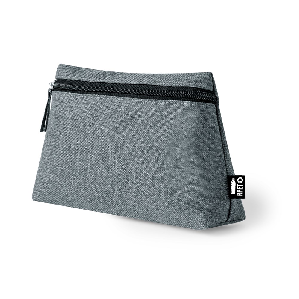 Multifunctionele beautytas van duurzaam 600D RPET. Met ritssluiting en trekker die bij de stof...meer