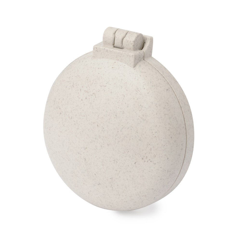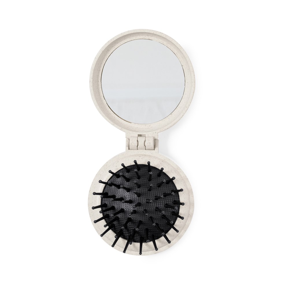 Opvouwbaar penseel met spiegel gemaakt van tarwestro. Met zachte compacte borstelharen die kunnen worden opgevouwen en met spiegel geïntegreerd op het deksel. Gepresenteerd in een individueel zakje van kraftpapier.Tarwestro bevordert het gebruik van natuurlijke grondstoffen en vermindert zo de uitstoot van vervuilende stoffen.