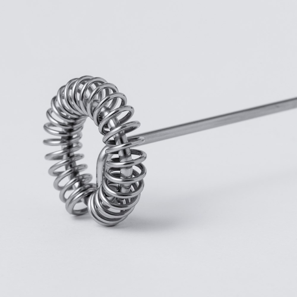 Praktische melkopschuimer, ontworpen om zacht en romig schuim te verkrijgen. Aangedreven door 2 AA-batterijen (niet inbegrepen). Gepresenteerd in een kraft-designdoos.