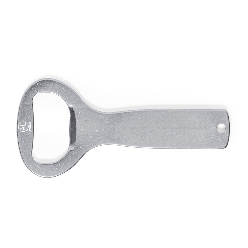"Flesopener van gerecycled aluminium in verschillende felle kleuren. Met gestanste handgreep om op te hangen en speciaal ontworpen voor laserbranding. Inclusief het logo van gerecycled aluminium in het centrale gedeelte en is verkrijgbaar in een breed scala aan kleuren. Gepresenteerd in een doos van gerecycled papier Gerecycled aluminium vindt zijn oorsprong in het vrijwel oneindige hergebruik van een van de materialen met het grootste recycleerbaarheidspotentieel, waarbij de kwaliteit van het resulterende product behouden blijft. Deze eigenschap maakt het tot een milieuvriendelijk materiaal van gerecycleerde oorsprong, dat gemakkelijk recyclebaar is. Bovendien kunnen nieuwe materialen en hulpbronnen worden verkregen uit verwerkings- en afvalprocessen, waardoor onder meer minder energie wordt verbruikt.GRS-certificering (Global Recycled Standard), die de gerecycleerde oorsprong garandeert van het materiaal dat wordt gebruikt om het product te vervaardigen."