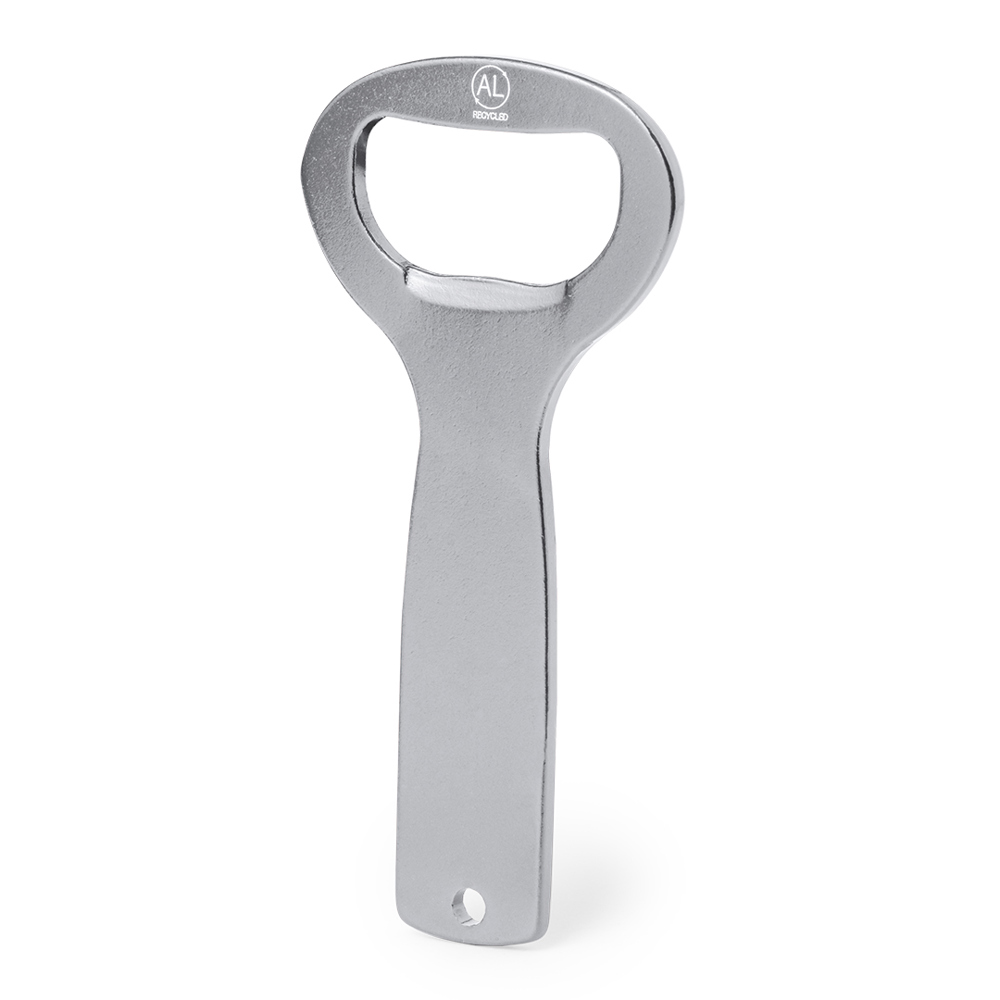 "Flesopener van gerecycled aluminium in verschillende felle kleuren. Met gestanste handgreep om op te hangen en speciaal ontworpen voor laserbranding. Inclusief het logo van gerecycled aluminium in het centrale gedeelte en is verkrijgbaar in een breed scala aan kleuren. Gepresenteerd in een doos van gerecycled papier Gerecycled aluminium vindt zijn oorsprong in het vrijwel oneindige hergebruik van een van de materialen met het grootste recycleerbaarheidspotentieel, waarbij de kwaliteit van het resulterende product behouden blijft. Deze eigenschap maakt het tot een milieuvriendelijk materiaal van gerecycleerde oorsprong, dat gemakkelijk recyclebaar is. Bovendien kunnen nieuwe materialen en hulpbronnen worden verkregen uit verwerkings- en afvalprocessen, waardoor onder meer minder energie wordt verbruikt.GRS-certificering (Global Recycled Standard), die de gerecycleerde oorsprong garandeert van het materiaal dat wordt gebruikt om het product te vervaardigen."