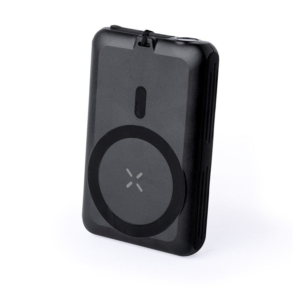 Externe hulpbatterij met opladen via zonne-energie en 5.000 mAh. Met geïntegreerde 5W draadloze oplader en Magsafe magnetische bevestiging, waardoor het apparaat tijdens het opladen kan worden gebruikt, en compatibel met apparaten die zijn uitgerust met Qi draadloze oplaadtechnologie. Het beschikt ook over een LED-lampje met twee standen : stabiel en knipperend Gepresenteerd in een individuele doos met een aantrekkelijk ontwerp. De capaciteiten die worden weergegeven in al onze externe hulpbatterijen zijn reëel, ze bevatten allemaal niet-gerecycleerde batterijen van klasse A, met een levensduur van minstens 500 oplaadcycli, en voldoen aan de CE-voorschriften. Bovendien worden ze vervaardigd volgens de RoHS-normen en in overeenstemming met de volgende veiligheidseisen: Beveiligingssysteem tegen overbelasting van de powerbank. Compleet ontladingsbeveiligingssysteem, dat de duurzaamheid van de powerbank vergroot. Blokkeersysteem om kortsluiting te voorkomen. Systeem voor constante laadoverdracht, in overeenstemming met de capaciteit van het doelapparaat.
