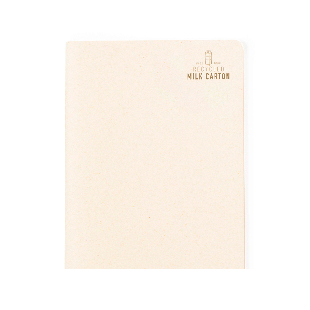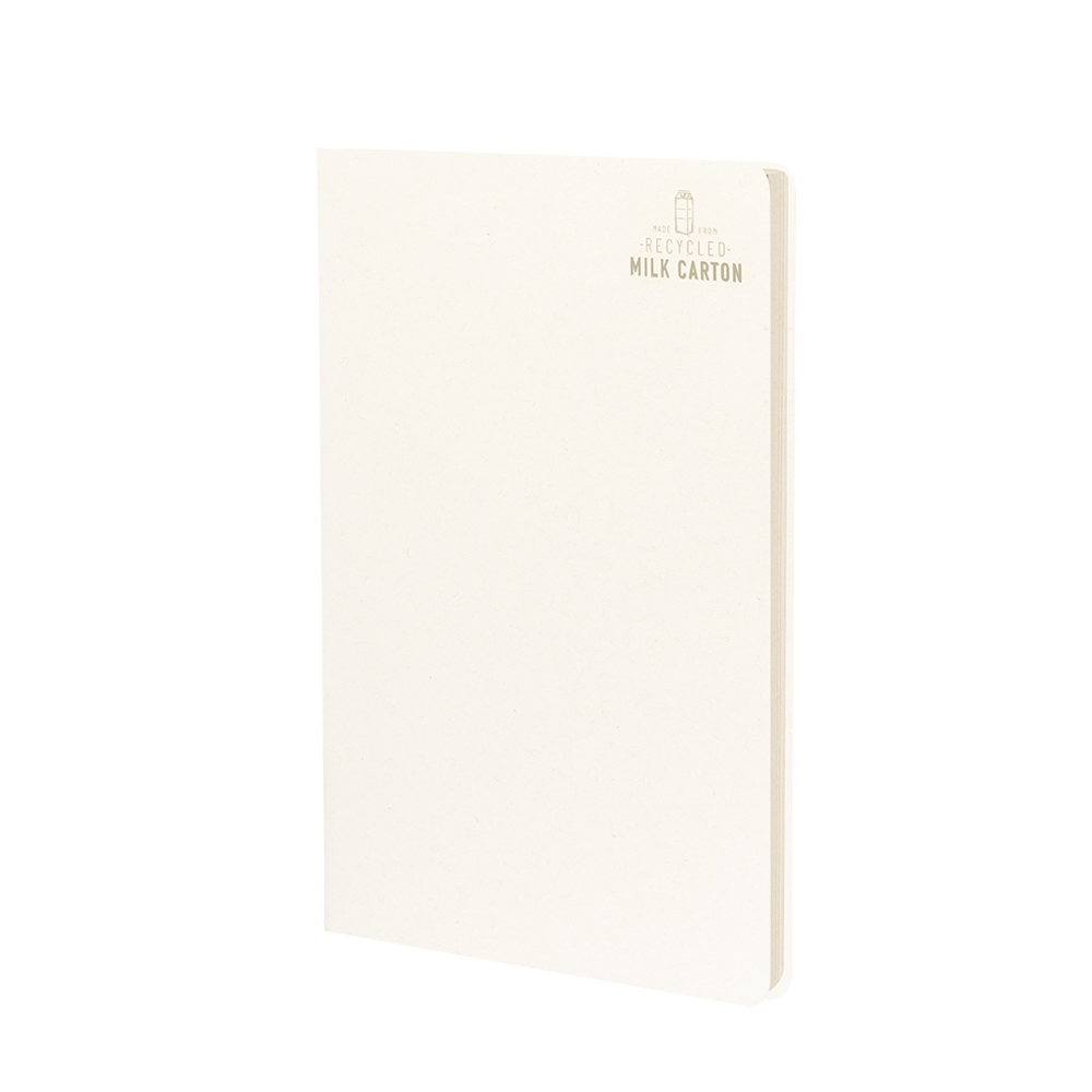 Notitieboek gemaakt van gerecyclede melkpakken. Met zachte kaft, gestikte afwerking en 60 binnenvellen wit papier en enkel gestreept. Gerecycled melkpakkenlogo op de voorkant en binnenpagina's. Gepresenteerd in een individuele gerecyclede zak.Melkkartons zijn meestal gemaakt van karton en aluminium. Tijdens het recyclingproces worden de verschillende verpakkingsmaterialen gescheiden voor hergebruik en herbestemming, waardoor ze bijdragen aan het oneindige pad van de circulaire economie. Dit materiaal staat bekend om zijn hoge recyclebaarheid, maar ook om zijn lichtgewicht en weerstand.