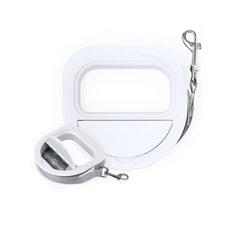 Hondenriem van 3 meter, gemaakt van duurzaam polyester, met een robuuste ABS-schaal. Comfortabel ergonomisch handvat en praktisch vak met deksel voor het opbergen van de tassen. Inclusief metalen karabijnhaak met draaibare haak en individueel verpakt in een kraft-designdoos.