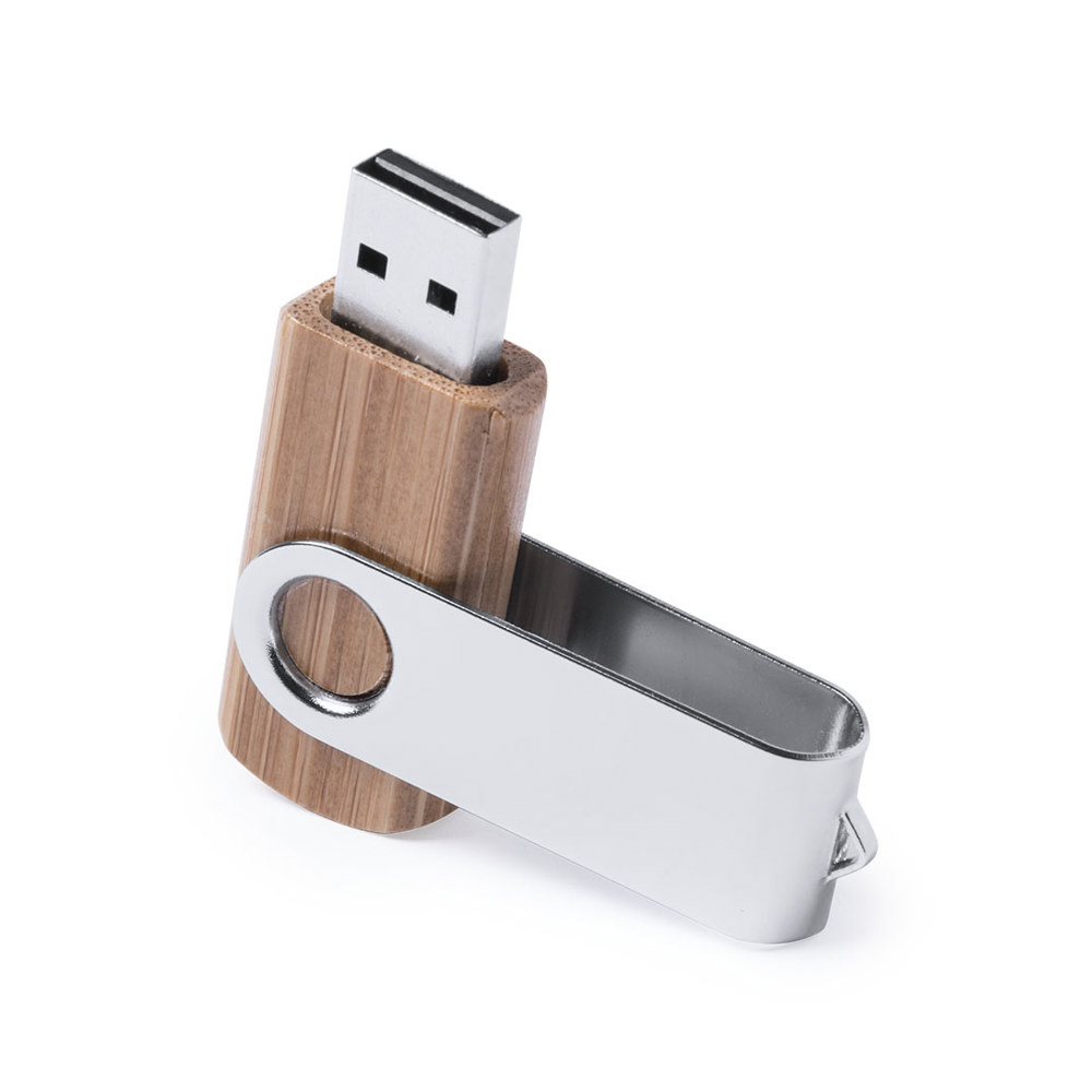 USBstick 16GB, gemaakt van bamboe hout met metalen clip. Gepresenteerd in een gerecyclede kartonnen doosje.
