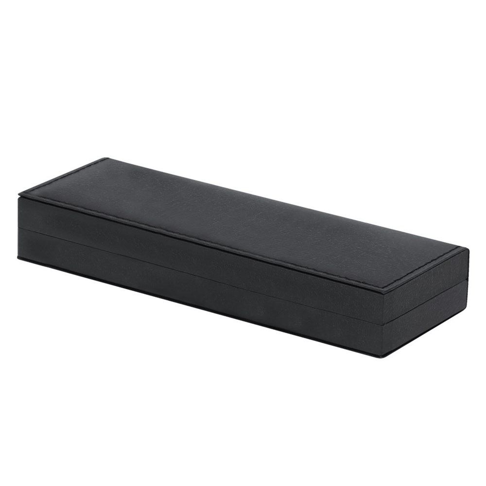 Onderscheidende set van balpen en rollerpen, beide ontworpen met elegante matzwarte aluminium behuizingen en roségouden decoratieve elementen. Getextureerd vat voor gemakkelijke grip en metalen clip. Balpen met draaisysteem en rollerpen met dop, beide met blauwe inkt en jumbo patroon. Gepresenteerd in een verfijnde, zwart lederen etui, wit van binnen.