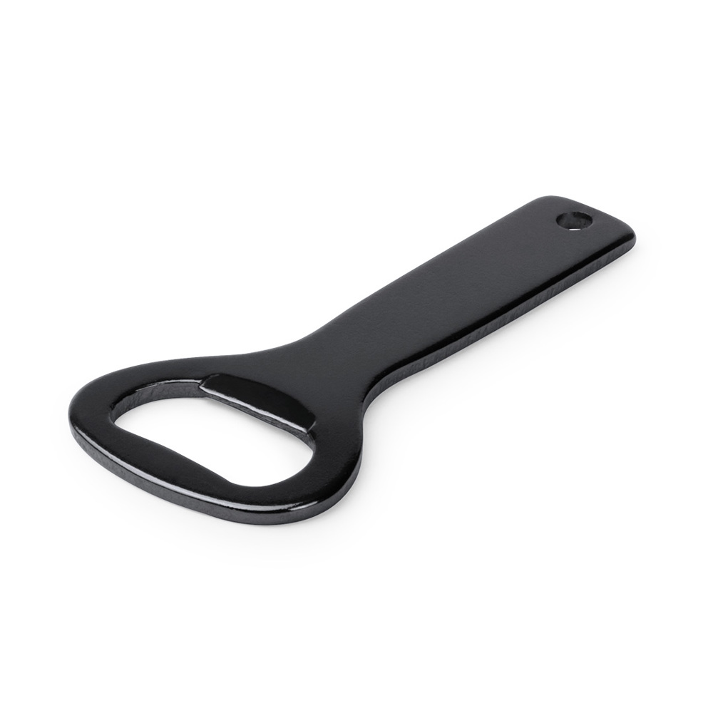 Aluminium opener in gevarieerde kleuren. Met gestanste opening voor lanyard -niet inbegrepen-. Speciaal ontworpen voor laserprinten.