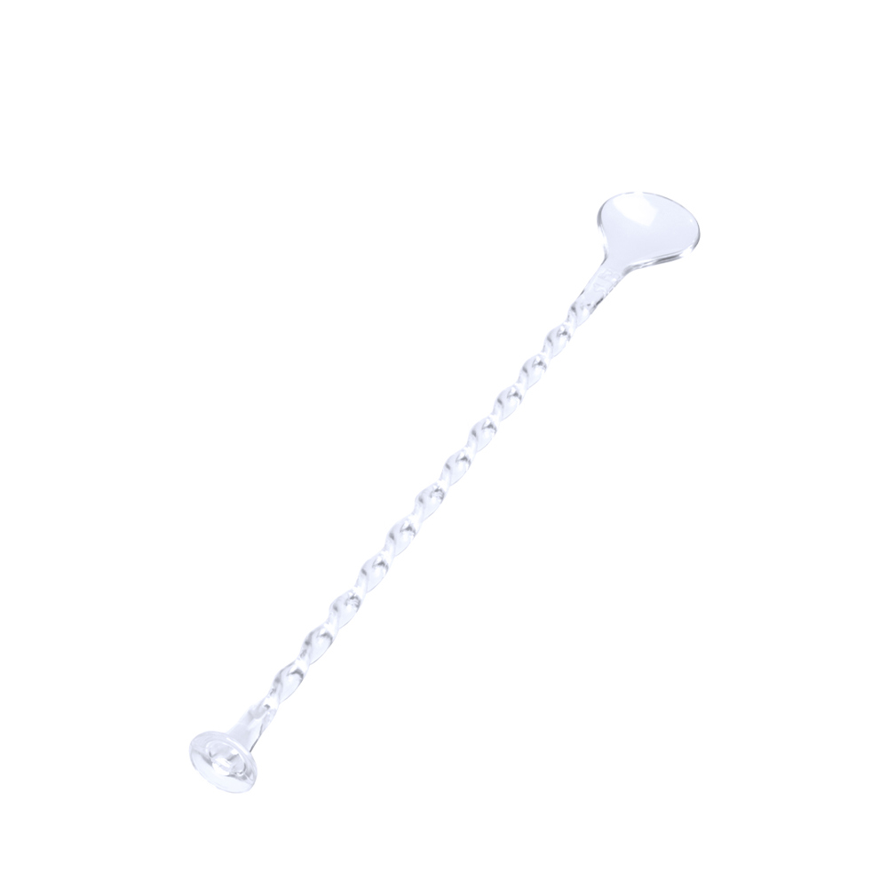 21 cm roerstaafjes voor drankjes. Spiraalvormig met transparante afwerking. Vlakke afwerking voor afdrukken en cirkelvormige deel voor logo.