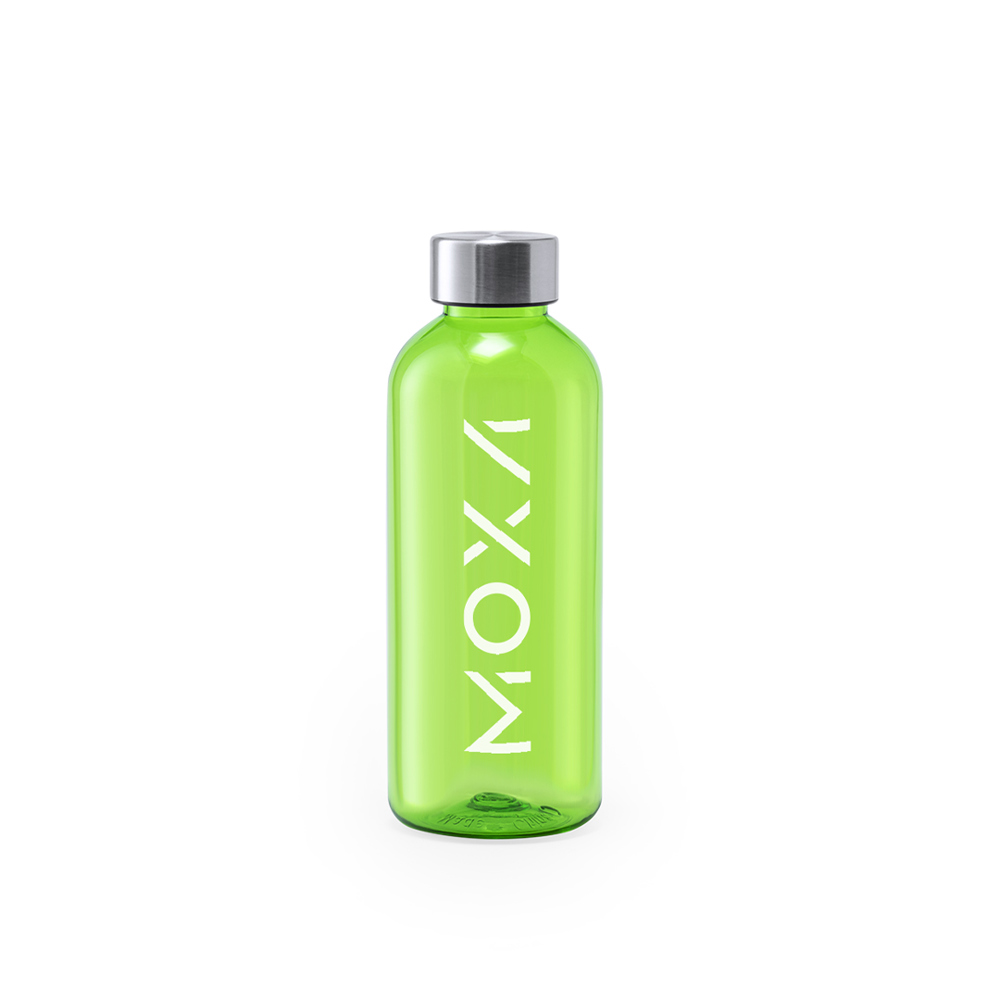 Fles met een inhoud van 600 ml. BPA-vrij, met behuizing van transparant tritan en hoge hittebestendigheid. Schroefdop van roestvrij staal. Verkrijgbaar in een brede waaier van kleuren.