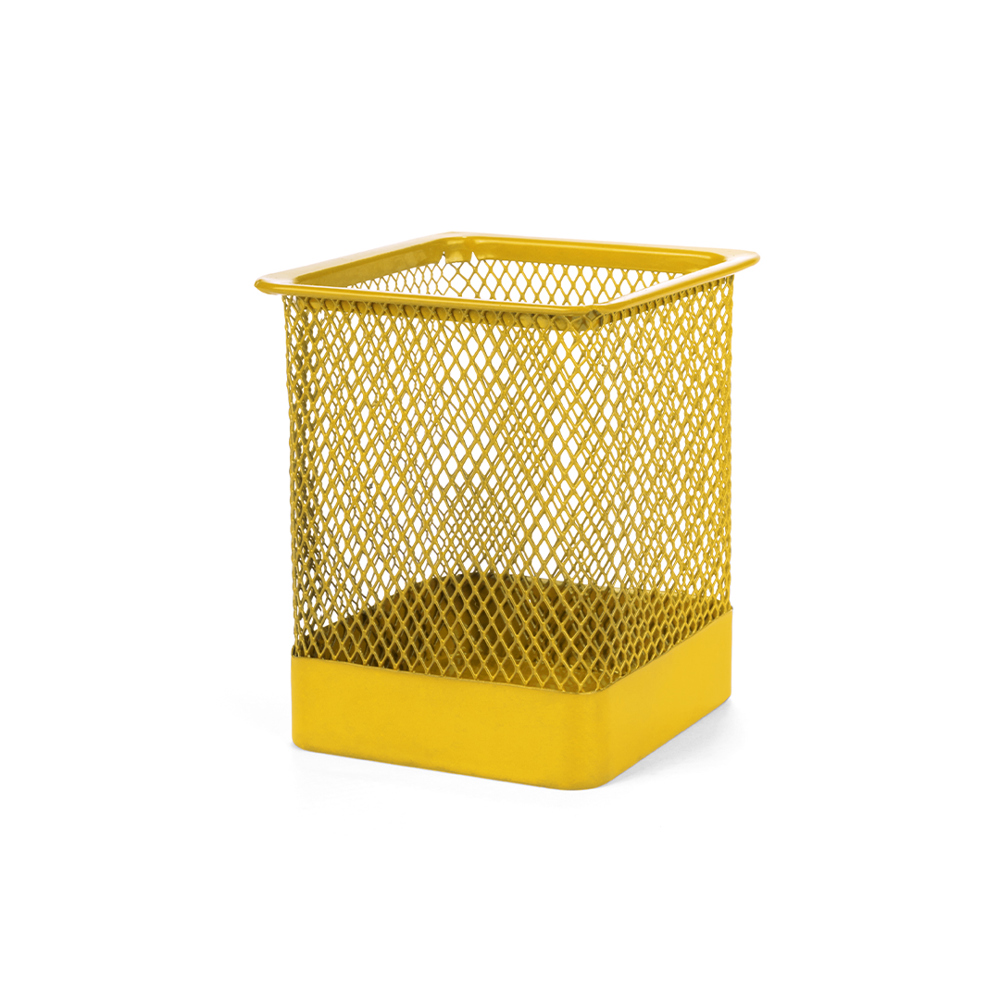 Metalen mesh pennenbakje in diverse kleuren. Gepresenteerd in een individuele doos.meer