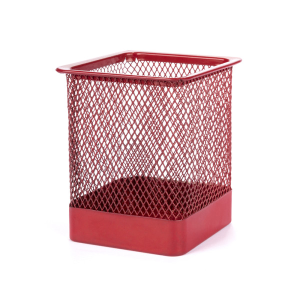 Metalen mesh pennenbakje in diverse kleuren. Gepresenteerd in een individuele doos.