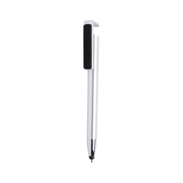 Multifunctionele stylus balpen met push-up-mechanisme in felle kleuren en clip met dubbele functie, speciaal ontworpen om te functioneren als houder voor mobiele apparaten en ook als schermreiniger. Met body in metallic afwerking, speciaal ontworpen voor tampondruk. Zwarte inkt.