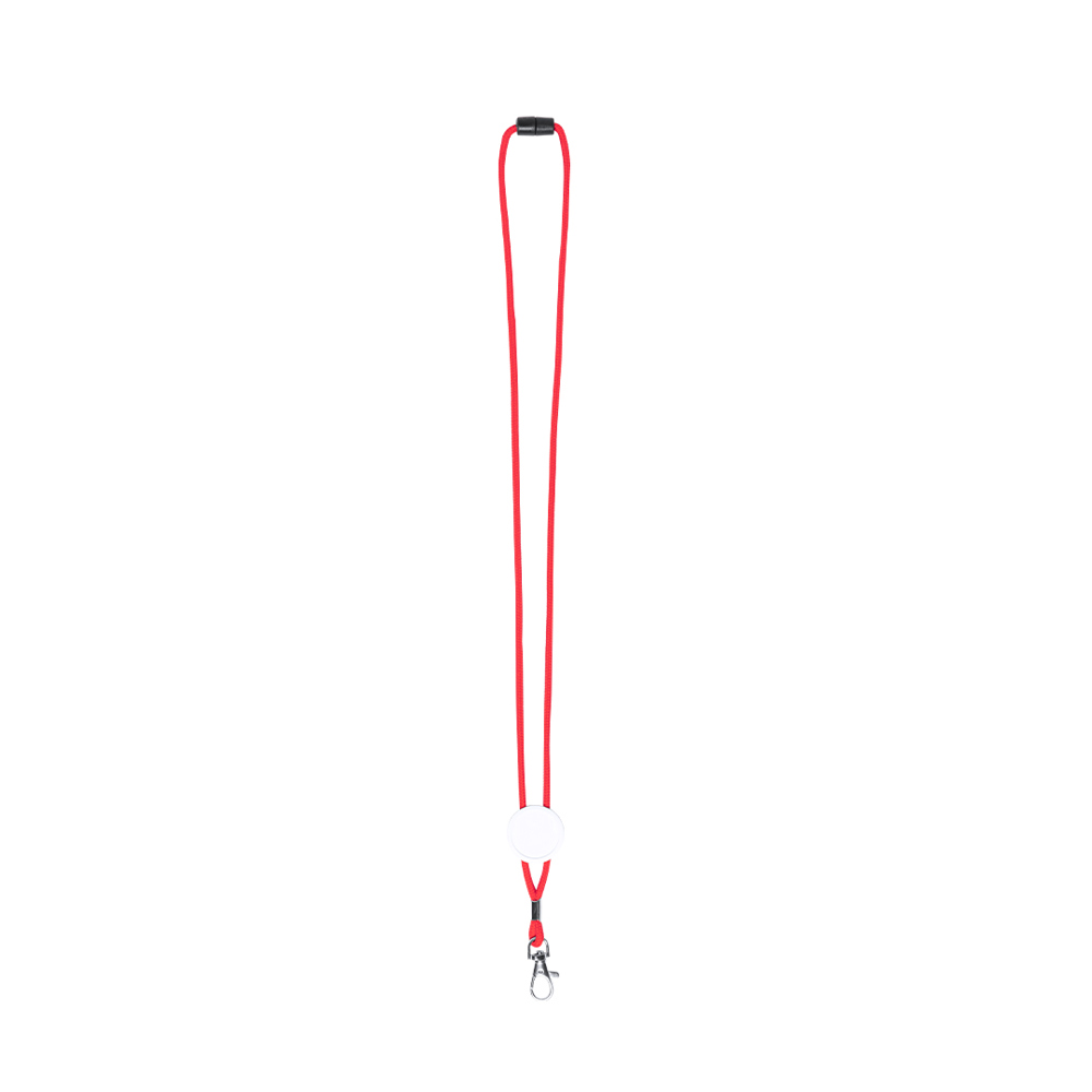 Lanyard van stevig en glad polyester band in diverse kleuren. Met afneembare sluiting op de kraag, metalen karabijnhaak en centraal deel voor afdrukken