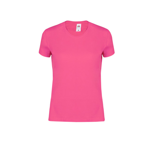 Dames-T-shirt in kleur Iconic van Fruit Of The Loom. Gemaakt van 100% geborsteld katoen Ring Spun 140g/m2. Zachte touch en slim fit, met zijnaden ontworpen voor een perfecte pasvorm. Smalle 1x1 geribde ronde hals en bijpassende sluiting. Gemakkelijk verwijderbaar label en verkrijgbaar in een brede waaier van kleuren. Maten XS, S, M, L, XL, XXL.