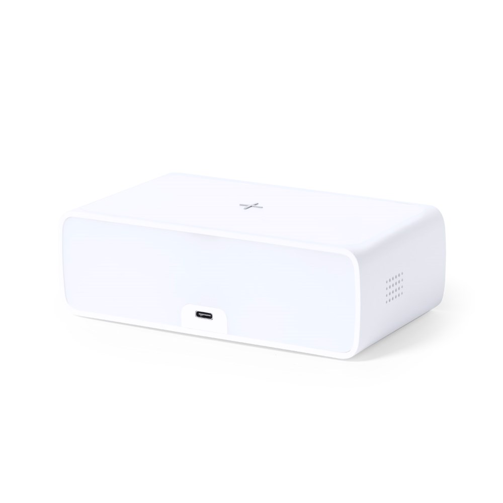 Multifunctioneel horloge in elegant wit design, met geïntegreerde 10W draadloze oplader en LED lamp. Datum-/tijdfunctie, alarm en 36 LED-lampjes met dimbare lichtintensiteit. USB-aansluiting, inclusief 100 cm Type C-kabel en hulpvoeding met knoopcelbatterijen (inbegrepen). Compatibel met apparaten die zijn uitgerust met draadloze oplaadtechnologie. Gepresenteerd in een aantrekkelijke designdoos.Voldoet aan de veiligheidseisen:Oververhitting beveiligingssysteem.Overlaadbeveiligingssysteem.